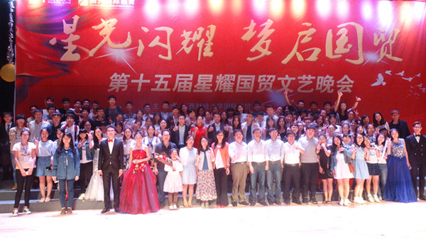 At 7 o’clock on the evening of May 28, the grand evening party “ Starlight of International Trade”, organized by school’s student union and all students of year 2014, had its opening ceremony in Jiaoqiao’s auditorium. Leaders and some teachers were present and expressed warm blessings to all students of the school.