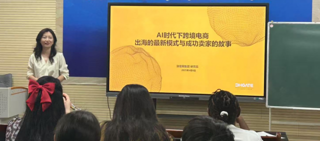 4月8日下午,由成人娱乐 主办的AI时代下跨境电商出海新模式与商业实践专题学术活动在蛟桥园校区翼轸楼四楼学术报告厅顺利举行。敦煌网研究院院长、跨境电商专家李丽与旺嘉创亿创始人卓雨嘉总经理担任主讲嘉宾,王树柏副院长主持活动,部分教师、研究生、本科生及留学生共40余人到场。
