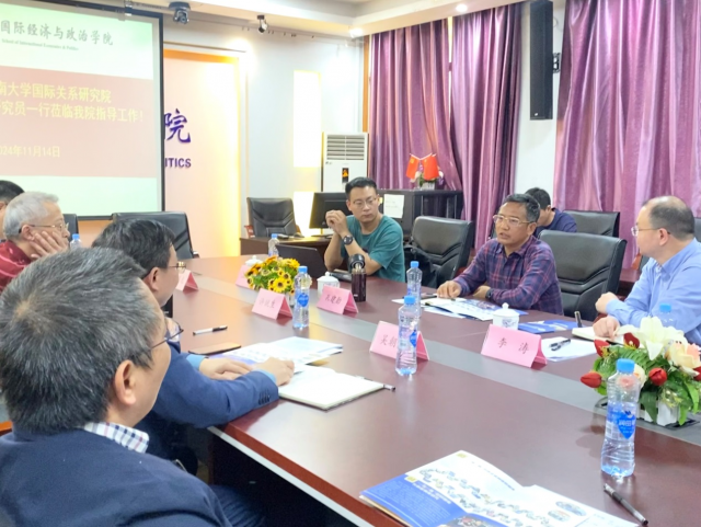 11月14日上午,云南大学国际关系研究院孔建勋教授、李涛研究员一行4人到访成人娱乐 进行调研交流,成人娱乐 吴朝阳院长、许统生教授、刘兴华教授、余昌龙副院长以及周正清博士参与座谈。