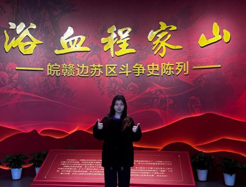 寒假期间,我作为一名学生党员,前往景德镇浮梁县兴田乡程家山村开展了为期一天的“四个一百”红色研学实践教育活动。在这片曾经硝烟弥漫的皖赣边苏区核心区域,我通过参观程家山革命烈士陵园、皖赣边苏区程家山历史展厅、中共皖赣分区委旧址等革命遗址,聆听讲解员讲述革命先辈的英勇事迹,深入了解了第二次土地革命时期以程家山为中心的皖赣边苏区波澜壮阔的革命历史与发展变迁。此次研学让我在沉浸式体验中触摸红色历史、感悟红色精神,不仅清晰认识到程家山村作为皖赣边苏区核心阵地的重要历史地位,更看到红色基因在新时代老区发展中的传承与践行。这段经历让我深刻体会到新时代青年传承红色血脉、勇担时代使命的重要意义,更坚定了我以实际行动践行红色精神、为民族复兴贡献力量的决心。